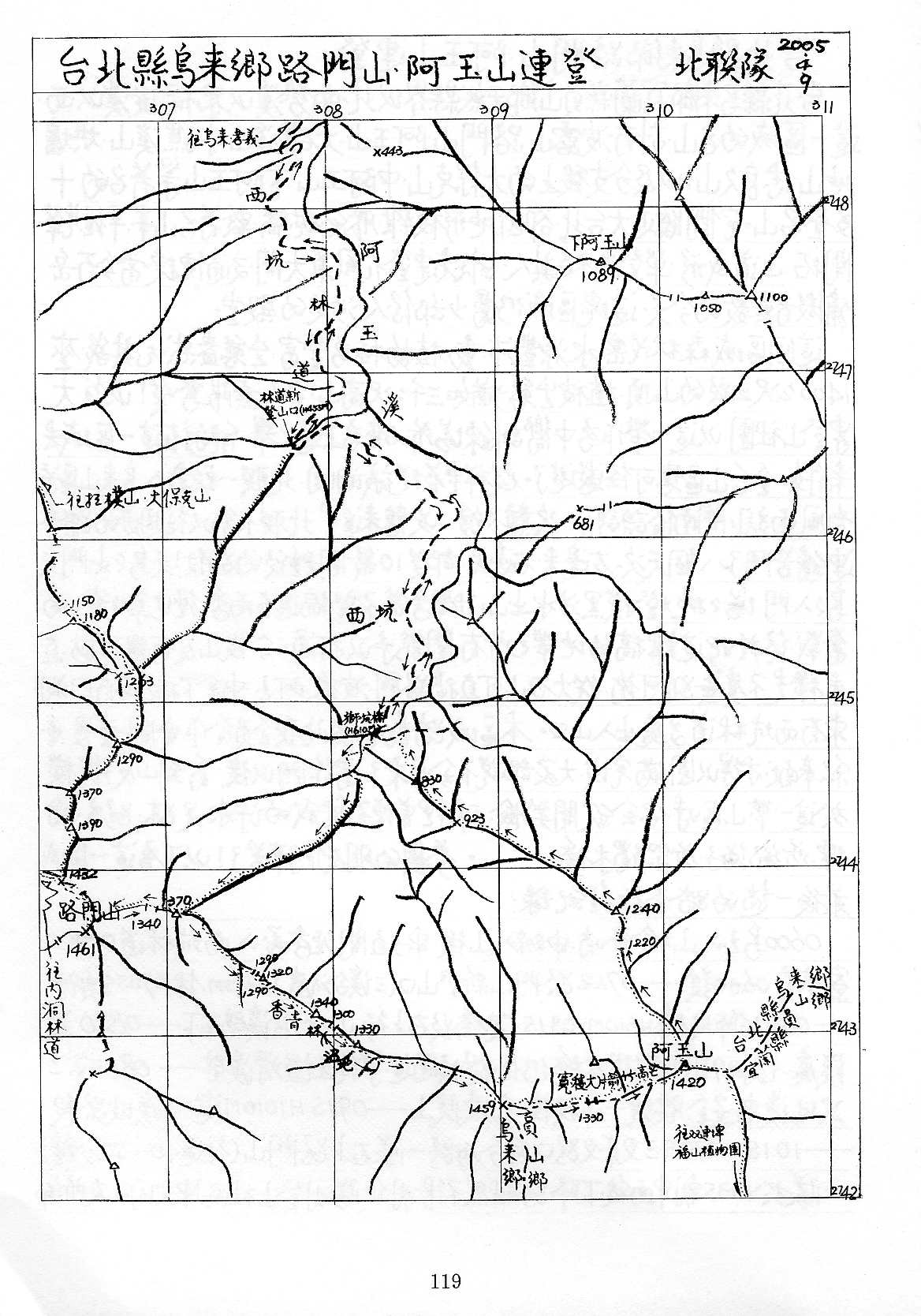 似乎沒有桶后林道可直達阿玉林道,只有西坑林道翻越阿玉山直達阿玉林道。當然,這是登山圖集,以登頂為目的,自不可佐證當消失的台9甲公路。